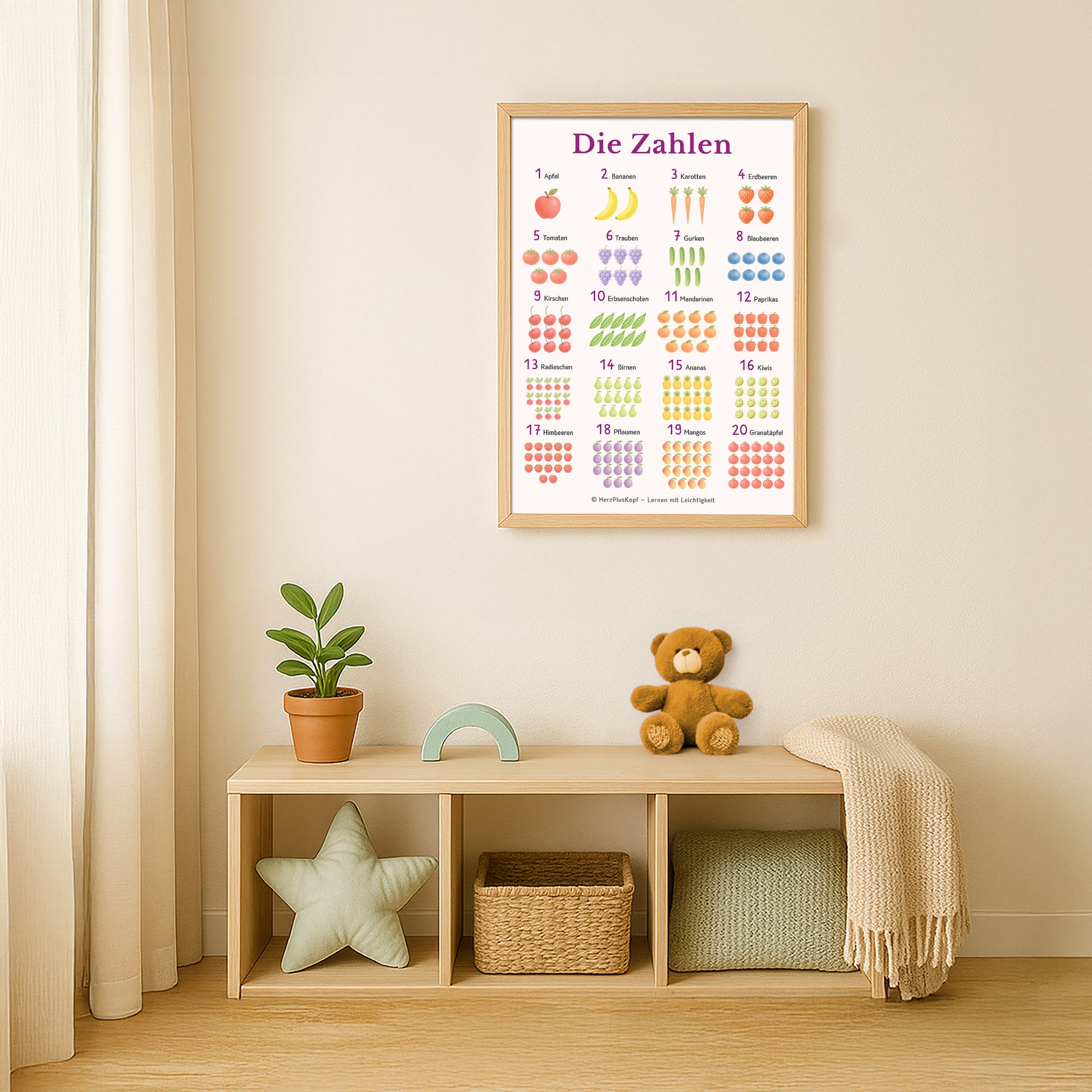 Die Poster sind in A4, A3 und A2 erhältlich, hochwertig gedruckt und im zarten Aquarellstil gestaltet – harmonisch für jedes Kinderzimmer, Klassenzimmer oder den Kita-Flur.